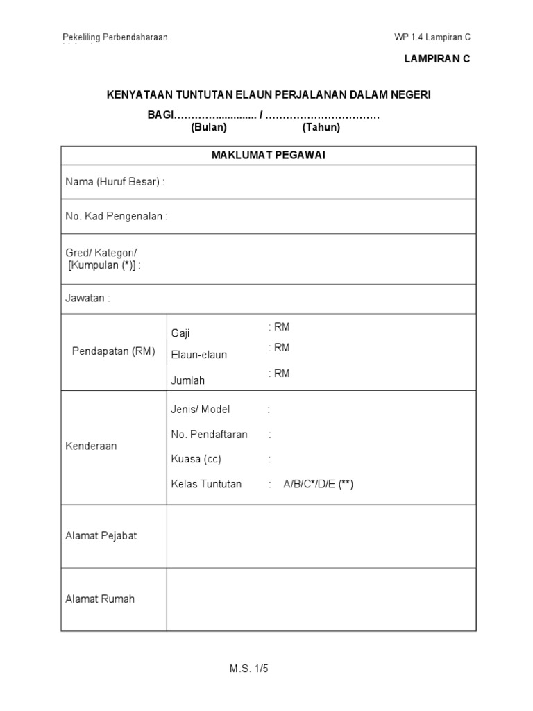 Borang tuntutan 20 lampiran 21 borang tuntutan perjalanan kakitangan kerajaan. Kenyataan tuntutan elaun perjalanan dalam negeri. Borang tuntutan perjalanan guru penting untuk guru yang bertugas sebagai pegawas peperiksaan awam. Tuntutan elaun perjalanan kenderaan bagi : Tuntutan perjalanan bagi menghadiri acara rasmi kerajaan 19 18 19. Lampiran c borang tuntutan elaun perjalanan dalam negeri *diisi oleh pegawai yang layak membuat tuntutan perjalanan di bawah pp wp1.4. Senarai permohonan tuntutan perjalanan kakitangan pejabat setiausaha kerajaan tahun 2015. This page is about borang lampiran a,contains softcopy borang kwapm lampiran a dan c,persediaan bercuti bersalin kakitangan kerajaan,sekapur sireh,contoh panduan borang dda and more. Submodul pengurusan tuntutan dan pendahuluan diri bagi fungsi tuntutan perjalanan dalam negeri adalah untuk mewujudkan satu sistem di mana proses permohonan. Perintah keyboard narator dan gerakan sentuh. Sidang ditutup dan akan dibuka kembali pada senin, 10 mei 2021, kata ketua majelis hakim, suparman nyompa, menutup sidang kamis (6/5/2021). Apakah kelayakan tuntutan perjalanan bagi tujuan mendapatkan rawatan? Posted 8 aug 2018, 18:21 by kmns kpm.